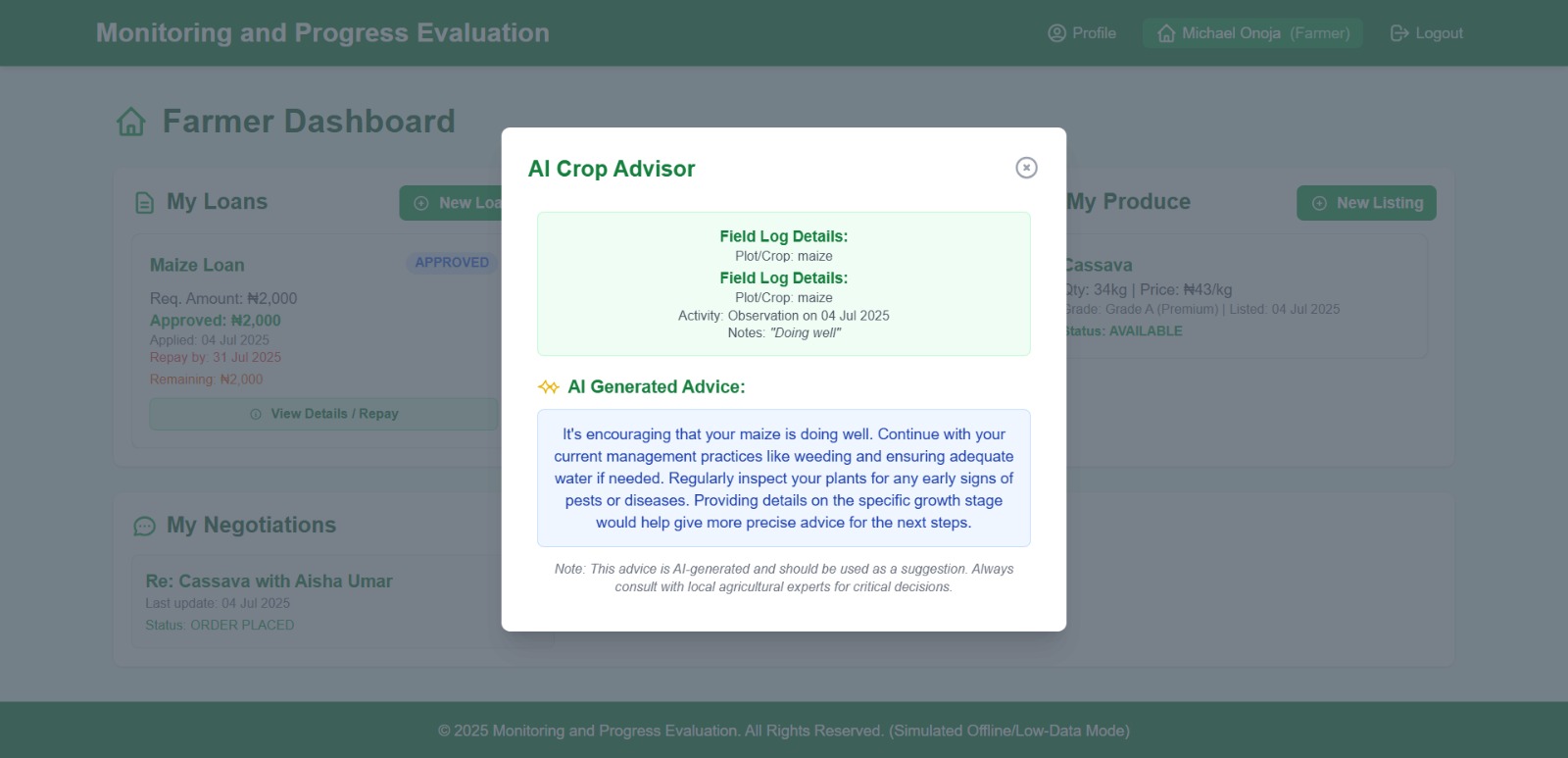 Project Overview: AgriLoan is a custom-built loan monitoring and evaluation module designed for Nigeria’s Anchor Borrowers’ Programme (ABP). Developed in collaboration with Heritage Bank Plc, the solution enabled real-time progress tracking of over 4.5 million smallholder farmers, automated produce sale linkages, and achieved a record 90% loan recovery rate — a major leap from the previous 40–45%